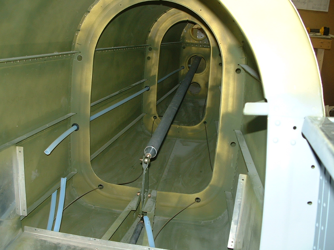 Looking into the tail. The tubing you see is to run the light wires and trim wires to the tail in. The company I work for manufactures this so I felt it was only proper to use some of it. Besides, it was free!! |